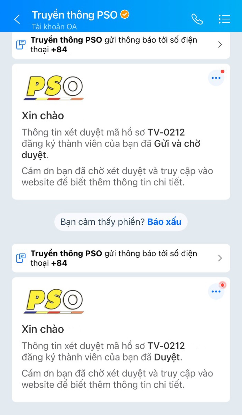 Bước 4: Zalo sẽ gửi tin nhắn thông báo cho bạn chờ xét duyệt. Sau khi xem xét hồ sơ có hợp lệ hay không, Zalo sẽ gửi tin nhắn thông báo trả kết quả.