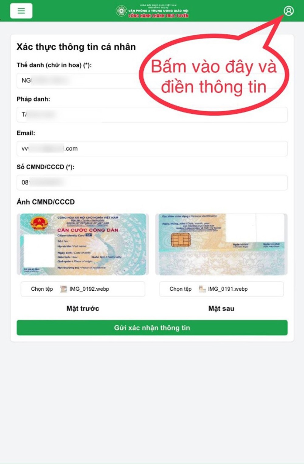 Bước 3: Bạn điền đầy đủ các thông tin. Nhấn gửi xác nhận thông tin.